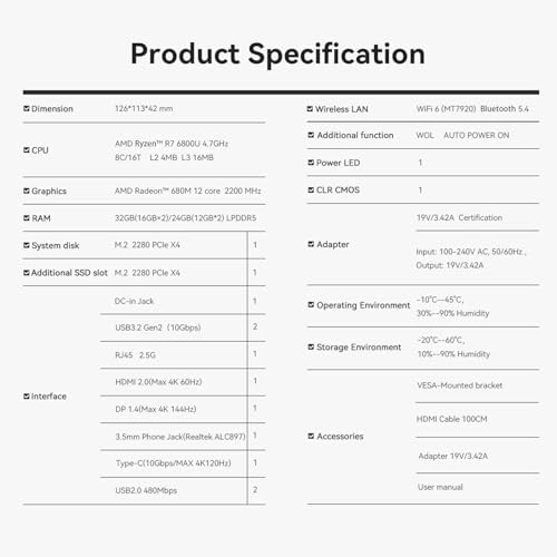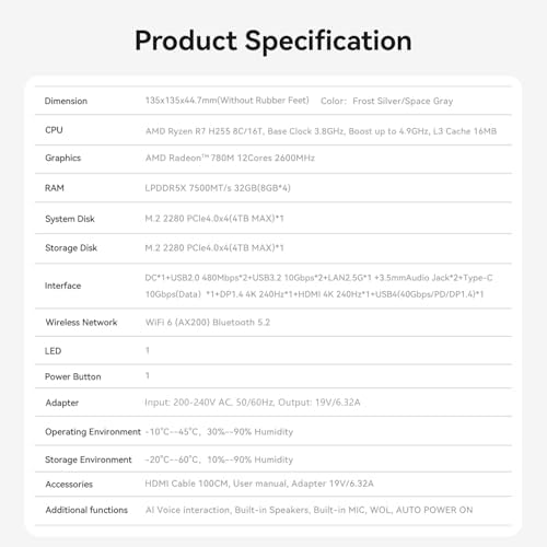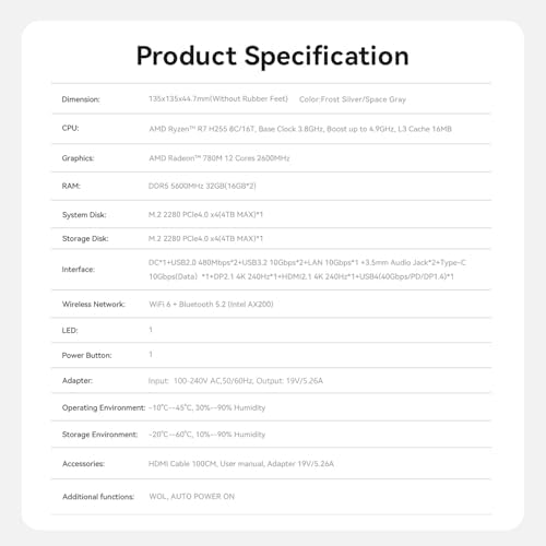 This Mini PC is designed for versatility, featuring a 2.5G LAN port for speeds up to 2500Mbps, and multiple USB 3.2 Gen2 ports, including a USB Type-C, allowing for high-speed data transfer rates of up to 10Gbps. Whether transferring large files from external drives or connecting multiple displays, this mini computer meets all your needs, making it perfect for designers, remote workers, or home entertainment use.