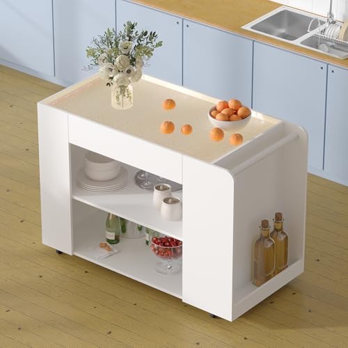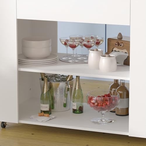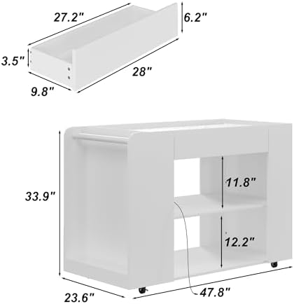 Crafted from durable MDF and tempered glass, our kitchen island offers a sturdy and long-lasting addition to your home. The smooth, finished surface is easy to clean and maintain, ensuring it looks great over time. Overall dimensions of the island measure 23.6″D x 47.8″W x 33.9″H, while the drawers offer a size of 9.8″D x 27.2″W x 3.5″H, providing ample space for all your kitchen needs.