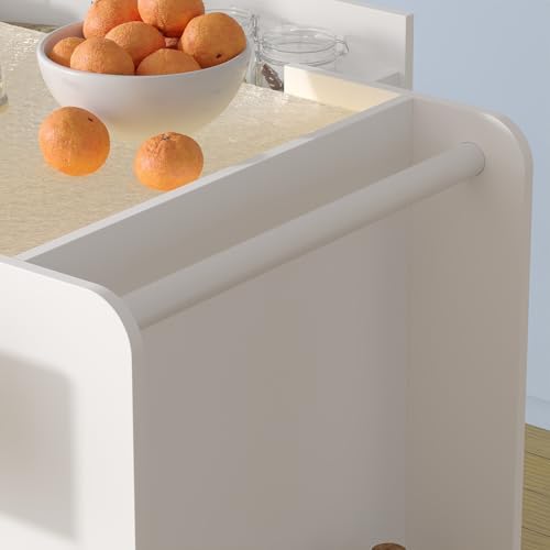 Say goodbye to clutter with our kitchen island’s efficient storage design. Equipped with 3 spacious open shelves and 2 convenient drawers, organizing your kitchen essentials has never been easier. Access your cooking items effortlessly while keeping your space tidy. Plus, the handy hanging rod is ideal for kitchen paper or hand towels, adding extra convenience to your daily routine.